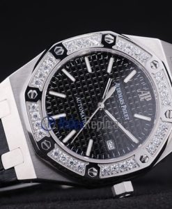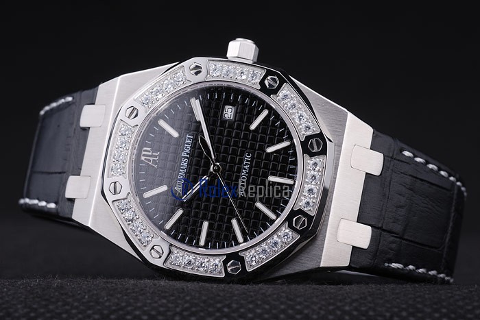 audemars piguet replica royal oak jumb black dial strip leather imitazione copia