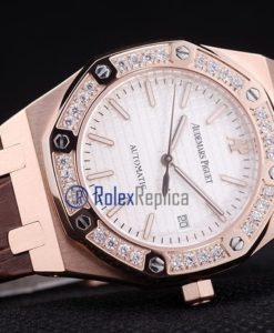 audemars piguet replica royal oak jumb rose gold white dial strip leather brown imitazione copia