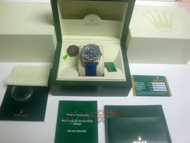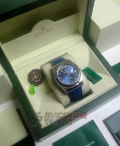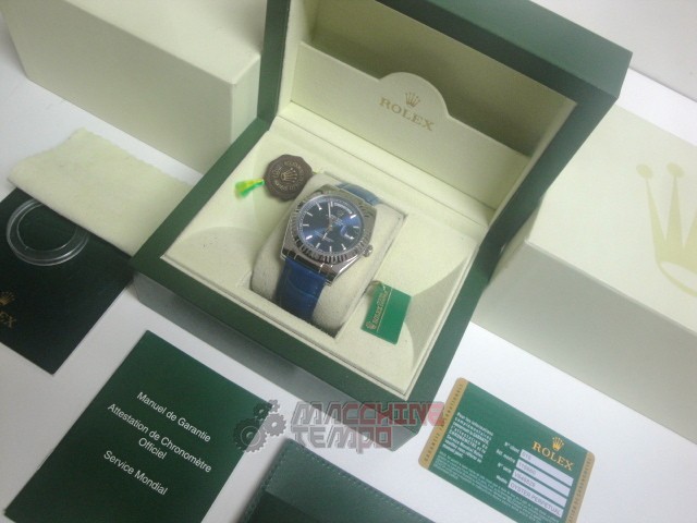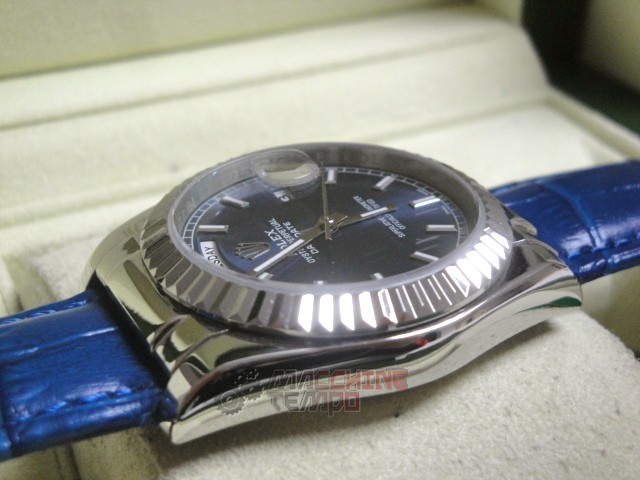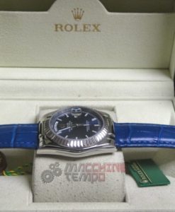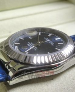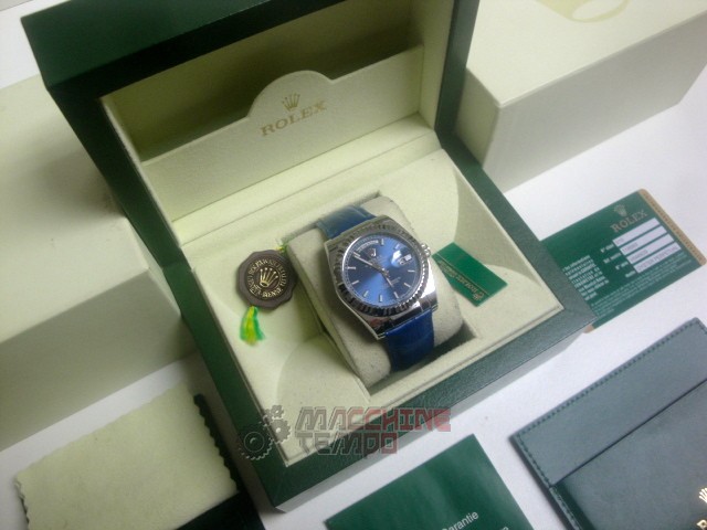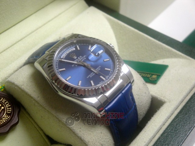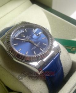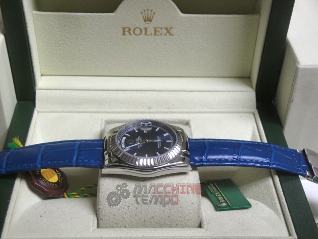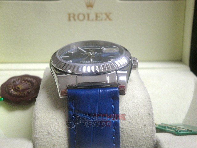 rolex replica daydate white gold strip leather blue orologio replica copia imitazione