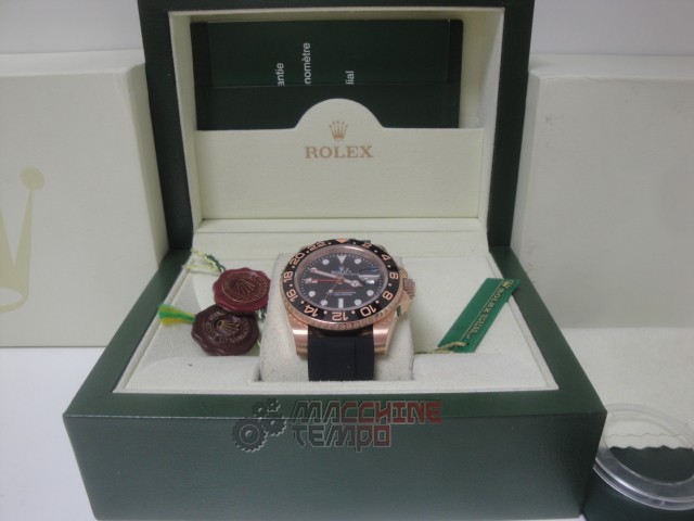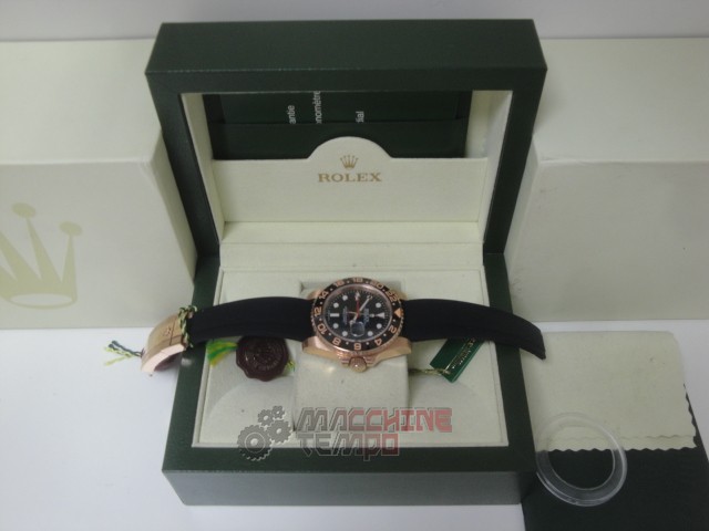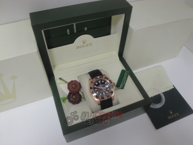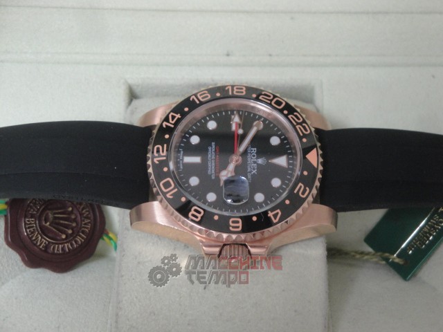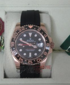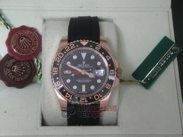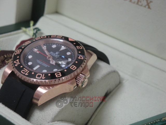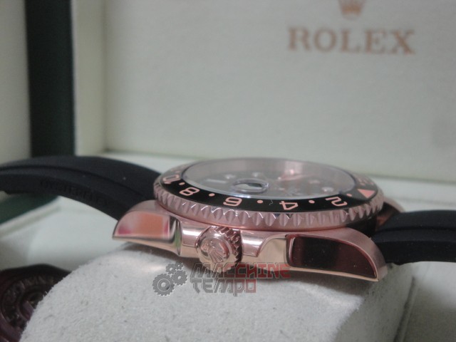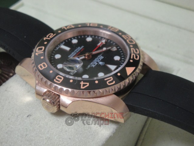 rolex replica GMT master II rose gold black dial strip rubber orologio replica