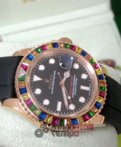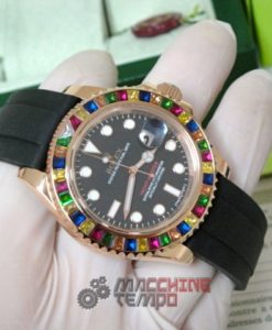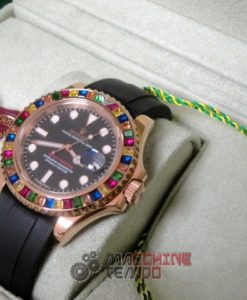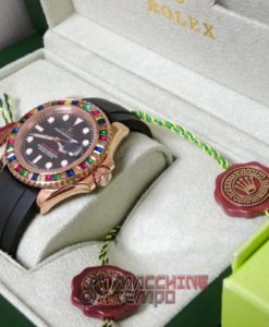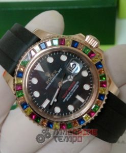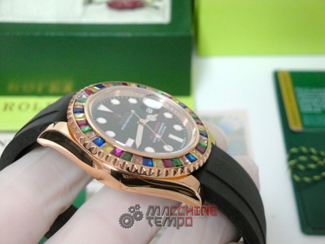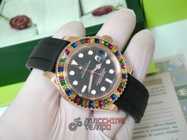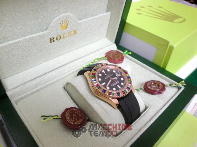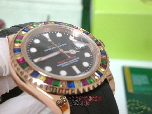 - Ghiera girevole bi-direzionale con pavè rubini come in originale rolex replica yacht master I